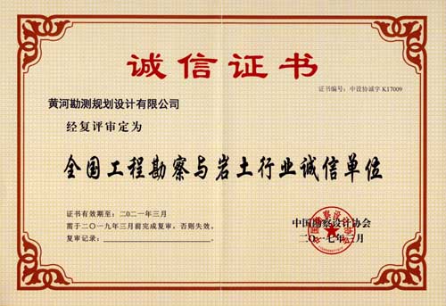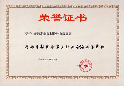 全國工程勘察與巖土行業誠信單位河南省工程設計行業AAA證書