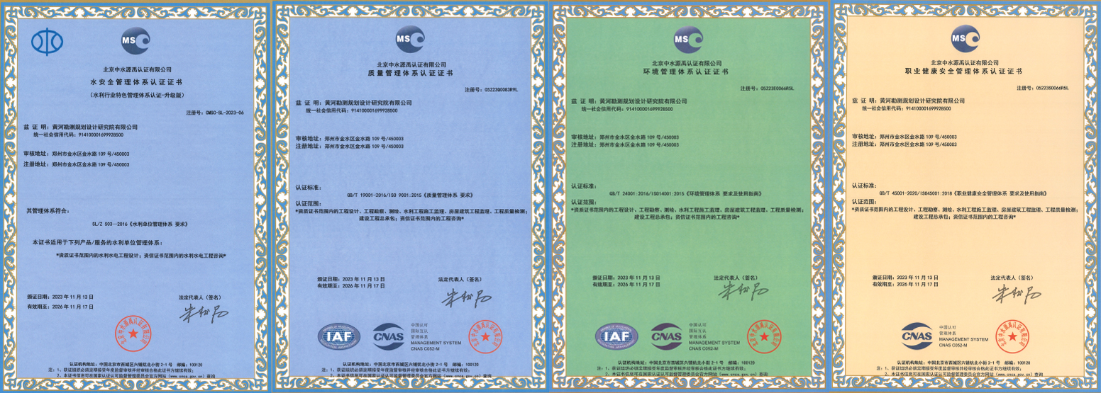 水安全管理體系認證證書 質量管理體系認證證書  環境管理體系認證證書  職業健康安全管理體系認證證書